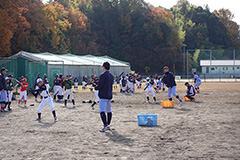 12月13日(土)岡山県倉敷市において、当社水島製油所主催の「ENEOS野球教室」を開催しました。当日は、快晴の空の下、地元の中学生48名が参加、野球教室では、ENEOS野球部の選手に加え、各チームの指導者の方がサポートとして参加し、ボール拾いや、ノックをしていただき、中学生たちの指導にあたりました。