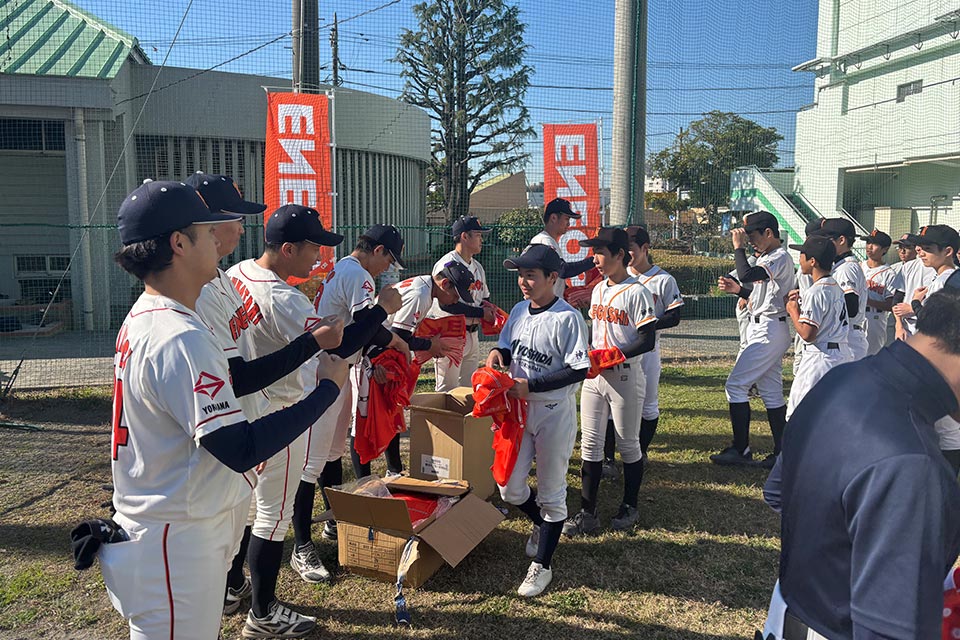 12月6日(土)三重県四日市市において、株式会社ENEOSマテリアル四日市工場主催の「ENEOS野球教室」を開催しました。当日は、地元の高校生26名が参加、野球教室では、ENEOS野球部の選手に加え、各チームの指導者の方がサポートとして参加し、ボール拾いや、ノックをしていただき、高校生たちの指導にあたりました。