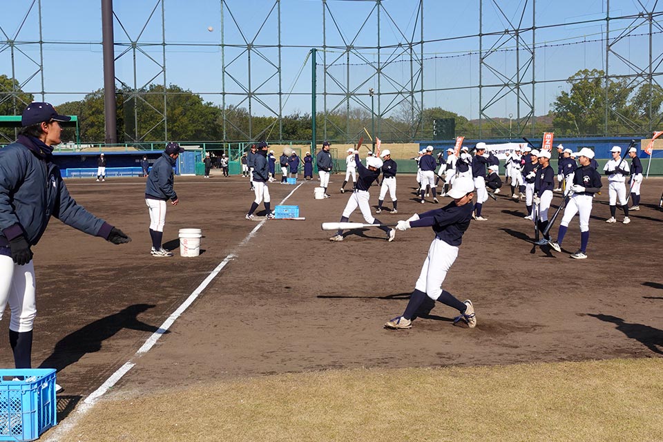12月13日(土)岡山県倉敷市において、当社水島製油所主催の「ENEOS野球教室」を開催しました。当日は、快晴の空の下、地元の中学生48名が参加、野球教室では、ENEOS野球部の選手に加え、各チームの指導者の方がサポートとして参加し、ボール拾いや、ノックをしていただき、中学生たちの指導にあたりました。