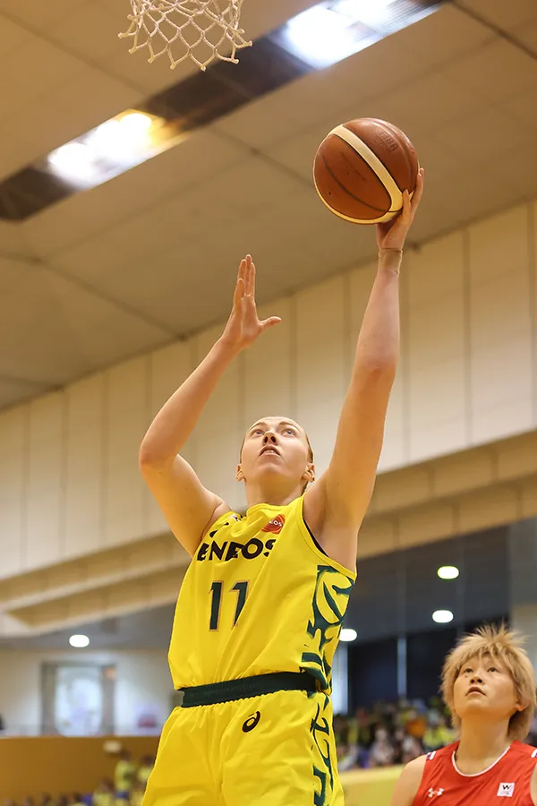 ユラさん(宮崎早織)やモニカさん(オコエ桃仁花)、エブリンさん(馬瓜)は日本代表としての経験があるので、そういった選手たちと一緒にプレーできることはうれしいです。特にユラさんはキャプテンとしてチームを引っ張ってくれていて、選手との関わり方でも学ぶことが多いです、スマートでバスケIQも高い。自由にユラさんがプレーしている姿を見ると学ぶことは多いなと感謝しています。