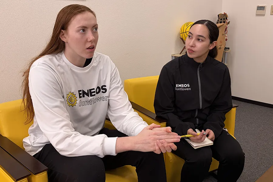 ENEOSのファンの方たちは毎試合見に来てくださったり、会場を埋め尽くして応援してくれたりと、そのエナジーには感謝しています。選手としてファンのみなさんに助けられているとも感じます。12月13、14日の柏市でのホームゲームには、(出身の)スタンフォード大学のTシャツを着ている方がいました。とてもうれしかったですね。