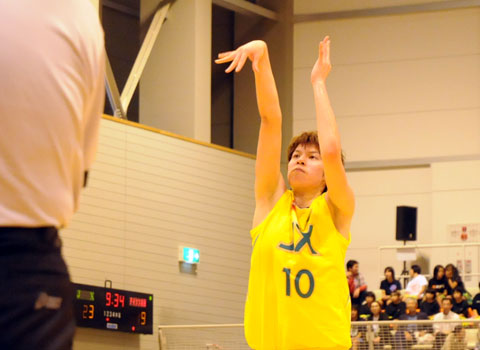 リュウからゴール下のメイへ、シュートが決まって17-12。