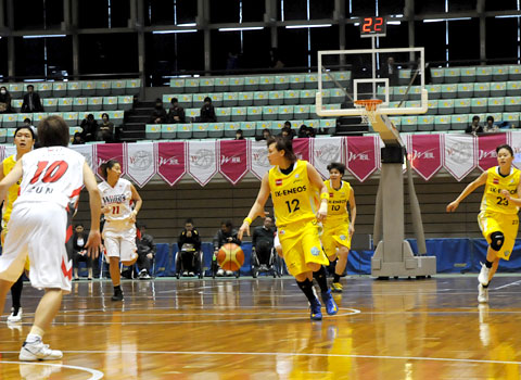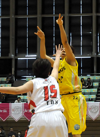 ミチのシュート、ニニがリバウンドを押し込み、74−52。