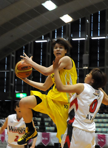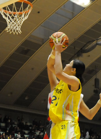 アカネが正面でジャンプシュート、68−45。