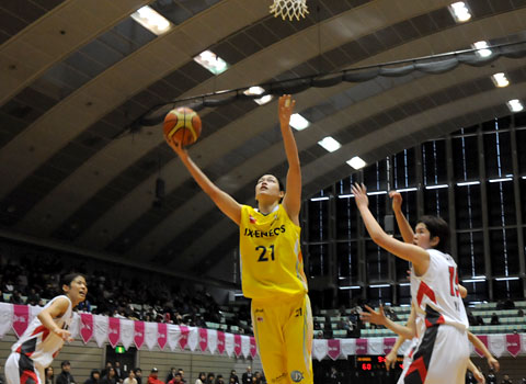 メイからゴール下のアース、高崎がファウルし2ショット。
